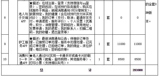 7.軟件與可穿戴設(shè)備需要與采購(gòu)方目前使用的《智慧居家養(yǎng)老服務(wù)平臺(tái)》進(jìn)行無縫對(duì)接,且能實(shí)現(xiàn)兩套平臺(tái)融合共享、即居家養(yǎng)老的老人和入住養(yǎng)老機(jī)構(gòu)的老人檔案信息共享、服務(wù)共享、賬戶共享,能極大方便居家的老人一鍵入住到養(yǎng)老機(jī)構(gòu)(提供承諾書及對(duì)接方案)。平臺(tái)對(duì)接產(chǎn)生的所有費(fèi)用由中標(biāo)方承擔(dān)、采購(gòu)方負(fù)責(zé)協(xié)調(diào)提供《智慧居家養(yǎng)老服務(wù)平臺(tái)》對(duì)接接口。