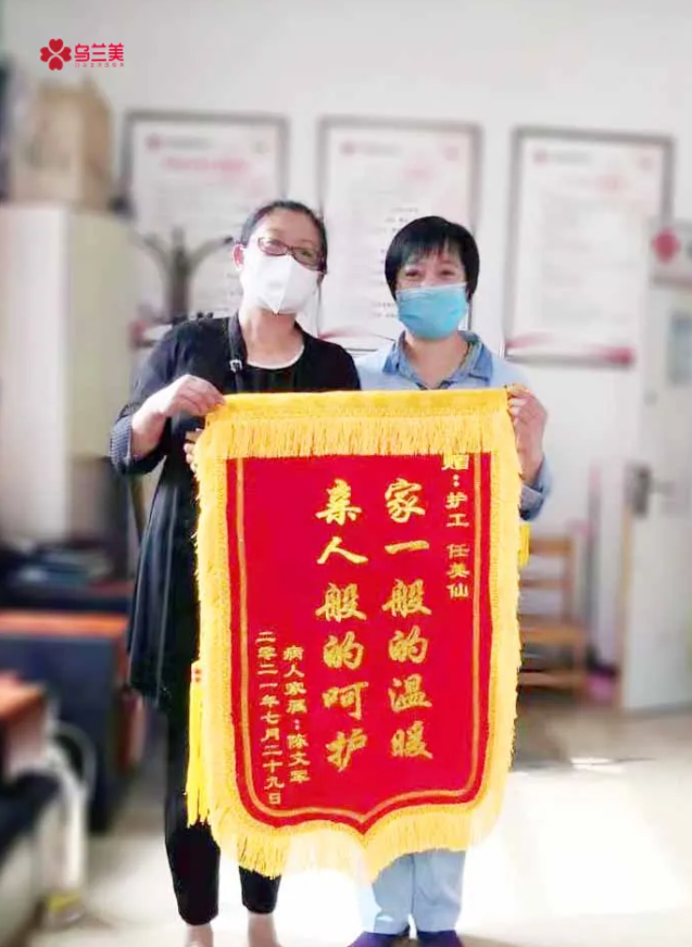 “我就是一個(gè)普通的農(nóng)民,沒(méi)有什么特殊的經(jīng)歷,但自從做了護(hù)工之后對(duì)我生活確實(shí)有很大的變化——增加了家庭經(jīng)濟(jì)收入來(lái)源。通過(guò)將近一年在醫(yī)院陪護(hù)病人的經(jīng)歷,讓我見(jiàn)識(shí)到了生命的堅(jiān)強(qiáng)和脆弱,也讓我認(rèn)識(shí)到生命的珍貴!”獲得錦旗的她略顯激動(dòng)的說(shuō):“感謝烏蘭美健康集團(tuán)為我們這些沒(méi)有一技之長(zhǎng)的人提供就業(yè)平臺(tái),也感謝所有在工作中幫助過(guò)我的人。現(xiàn)在,我可以將所學(xué)到的知識(shí)幫助到更多需要幫助的人。”