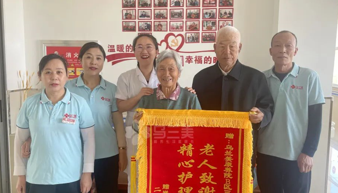 2022年4月11日上午,烏蘭美康養(yǎng)院B區(qū)三樓全體工作人員收到入住長(zhǎng)者王興禮爺爺、于守珍奶奶夫妻倆的一面印有“老人致謝送錦旗,精心護(hù)理暖人心”的錦旗,以表達(dá)對(duì)全體工作人員的感激之情。